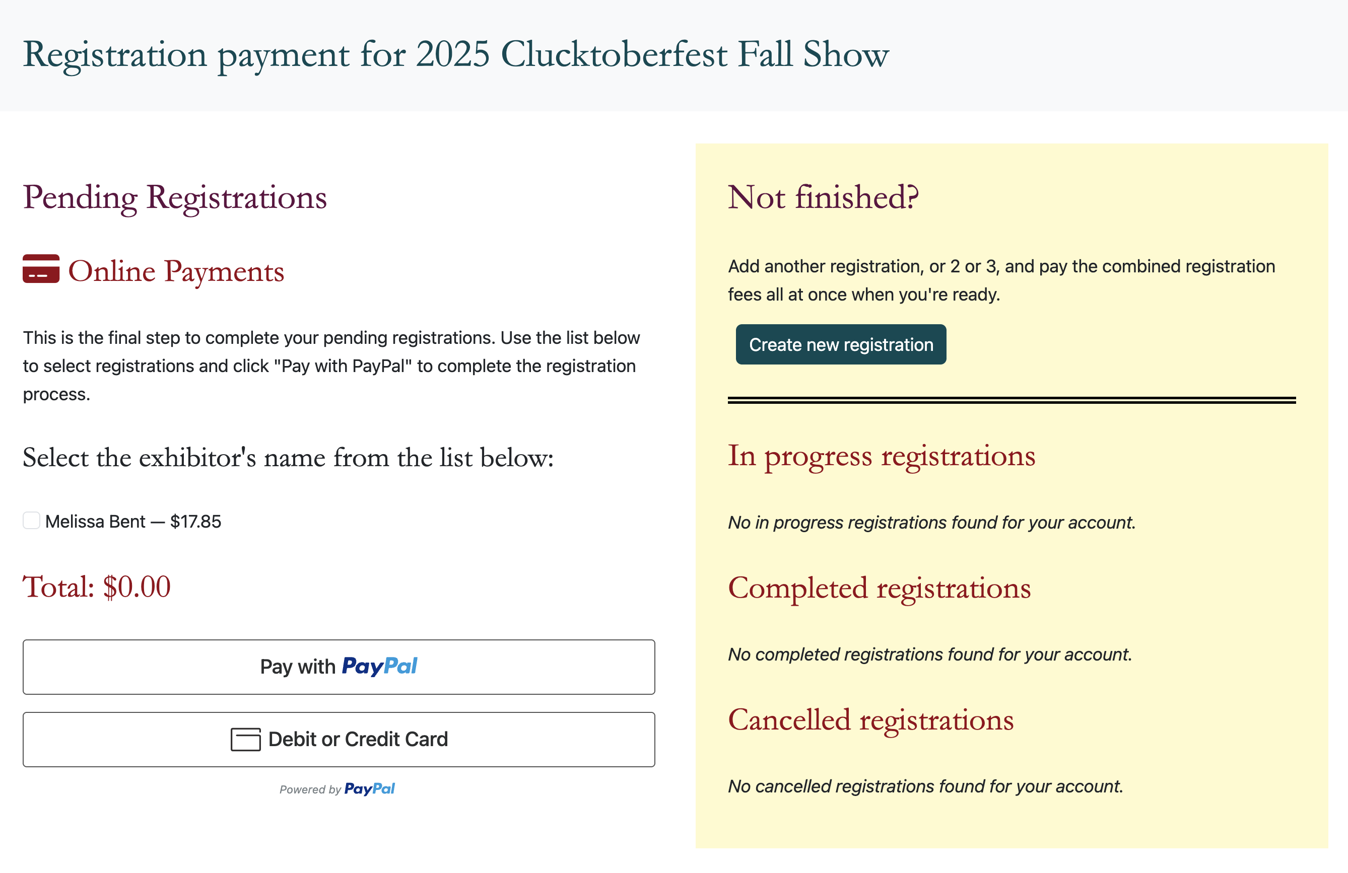 The payment dashboard allows you to pay for one (or many) registrations all at once.