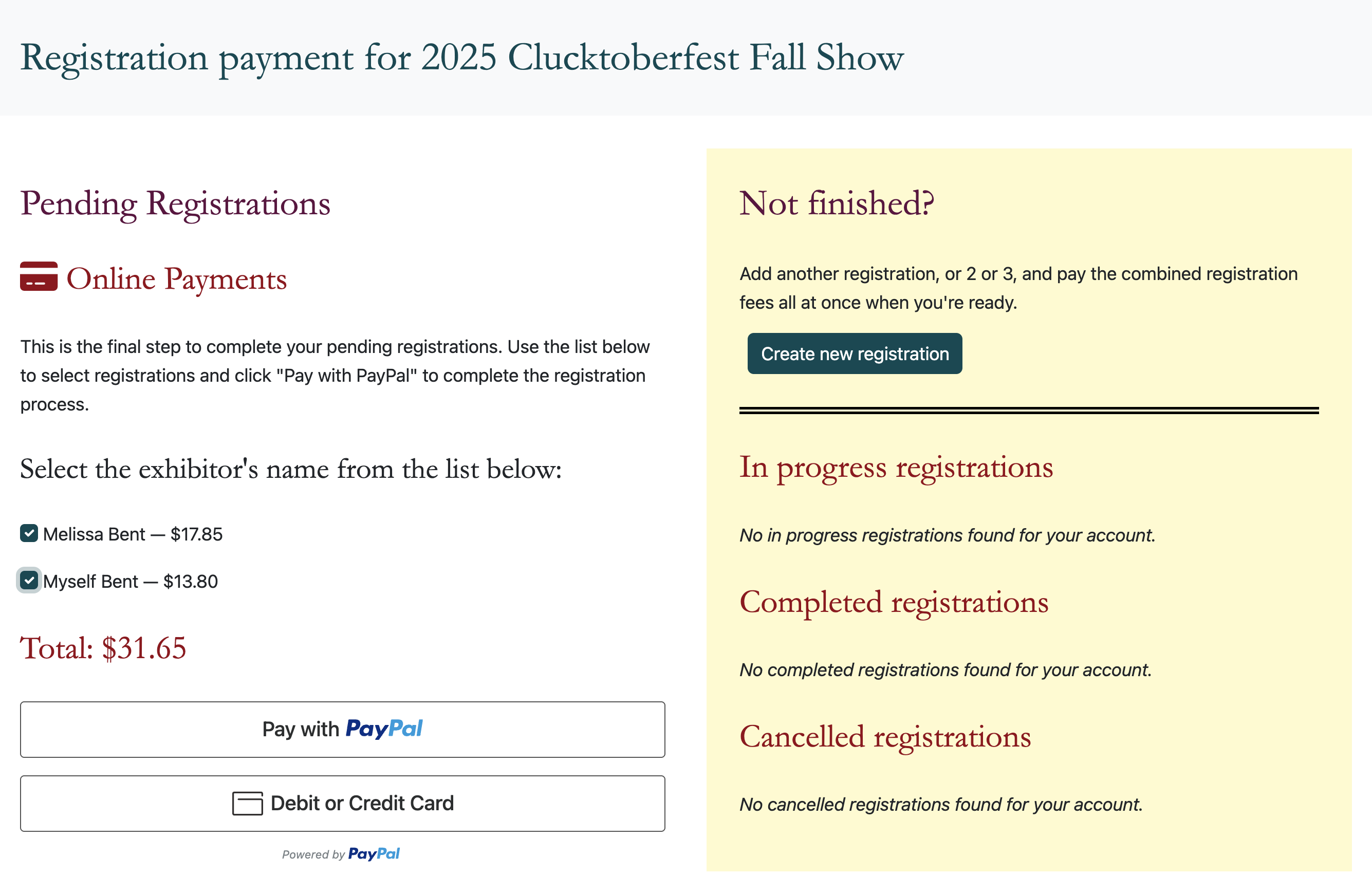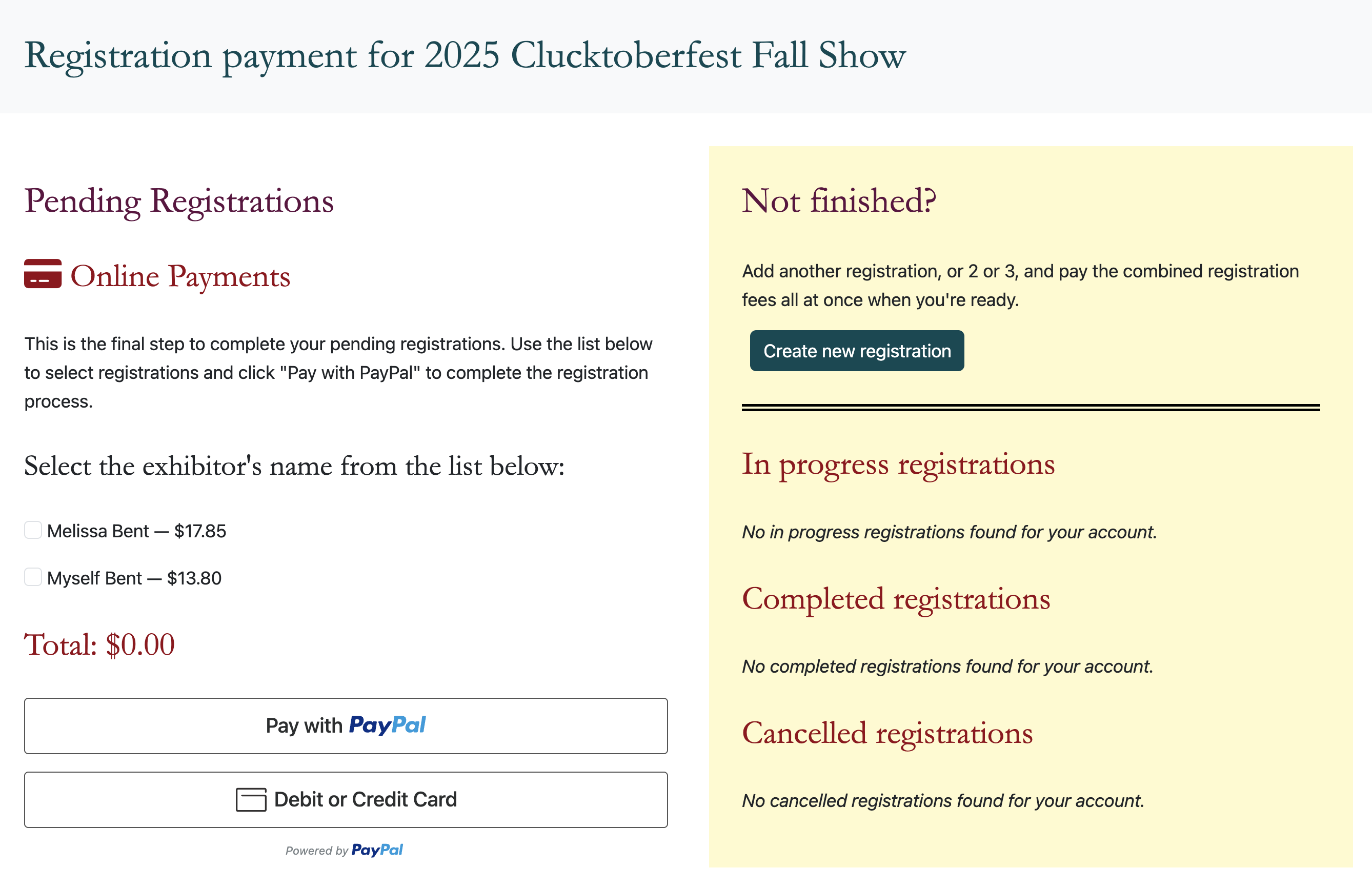 If there are multiple registrations, you can select one or both checkboxes to pay for both registrations at the same time.
